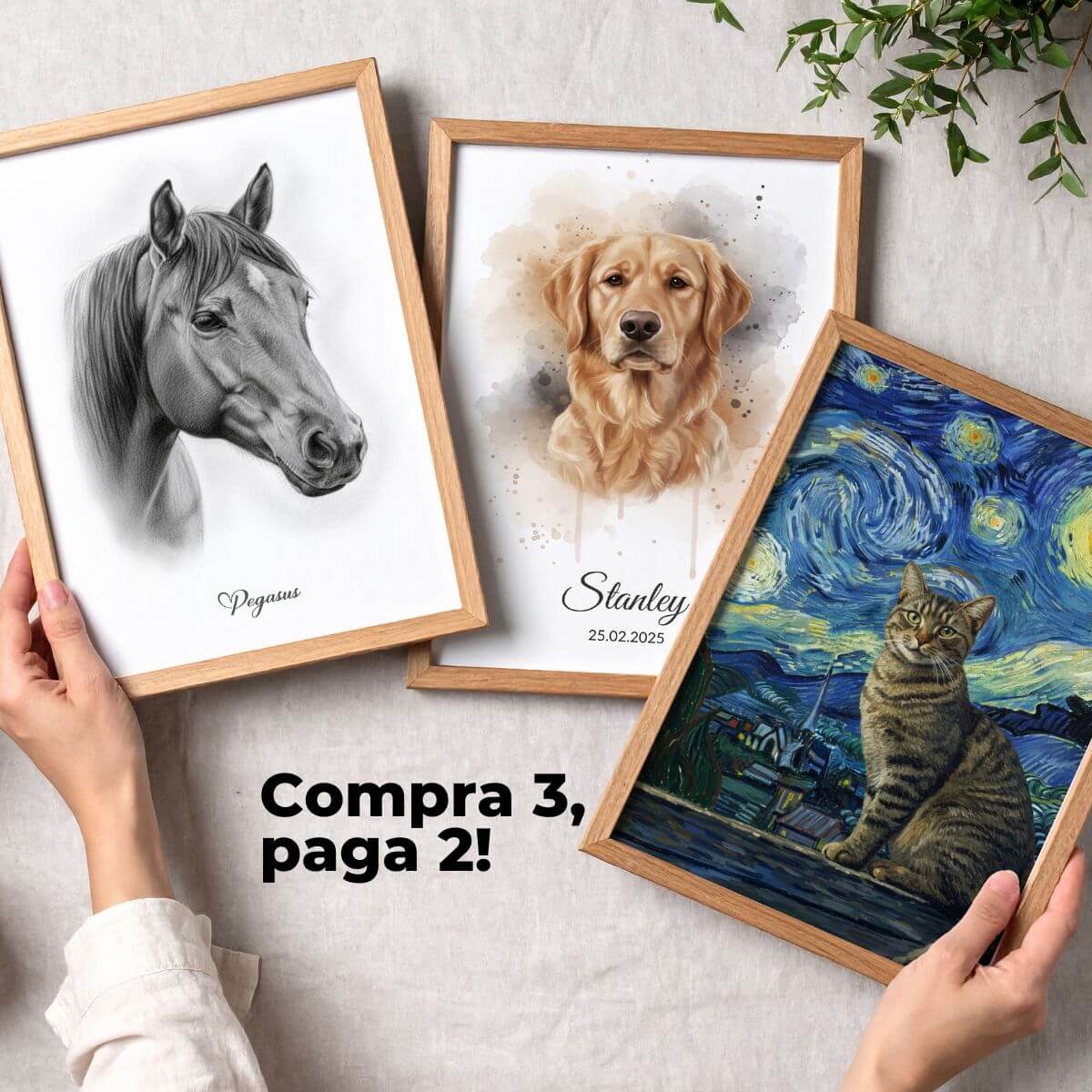 Añade 3 o más retratos de tu elección al carrito y recibe automáticamente 1 retrato gratis. No se necesita código de descuento. También se pueden combinar diferentes estilos y versiones. Si hay precios distintos, se descontará siempre el retrato más barato.