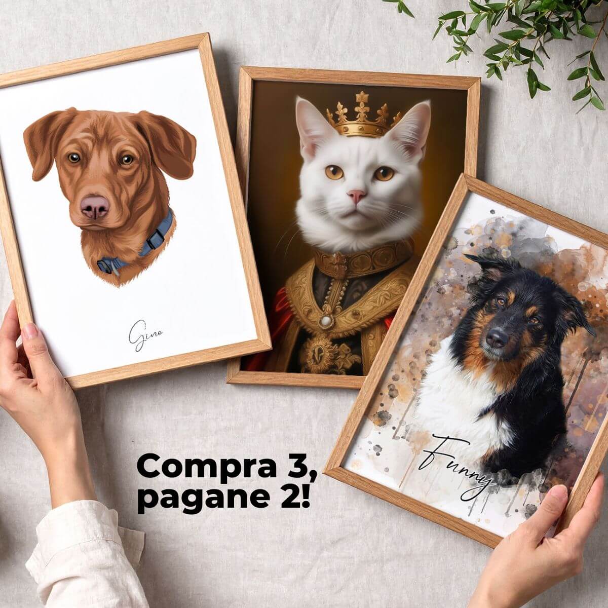 Aggiungi 3 o più ritratti a tua scelta al carrello e ricevi automaticamente 1 ritratto in omaggio. Non è necessario alcun codice sconto. È possibile combinare anche stili e versioni diversi. In caso di prezzi differenti, verrà scalato come sconto il ritratto dal prezzo più basso.