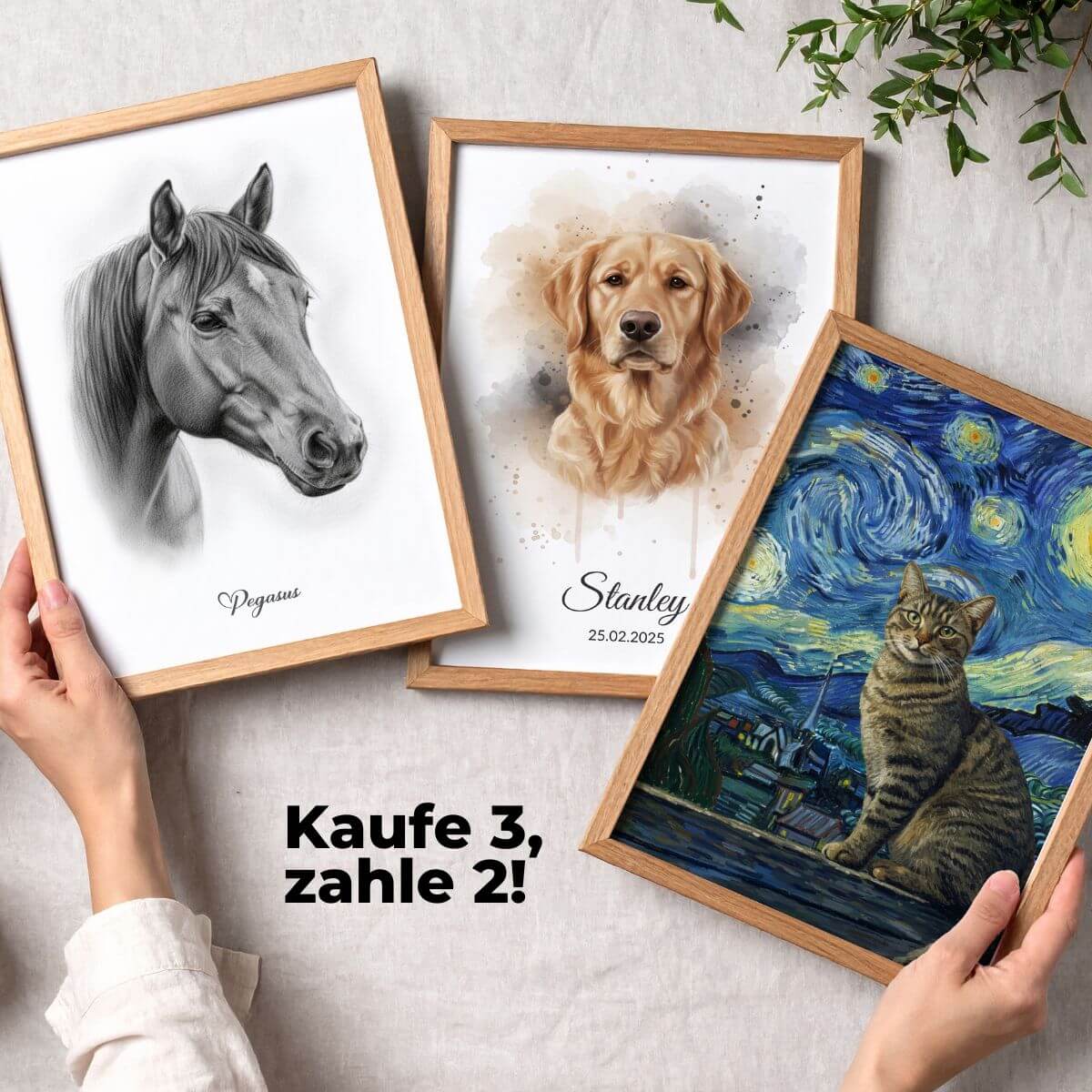 Lege 3 oder mehr Portraits deiner Wahl in den Warenkorb und erhalte automatisch 1 Portrait geschenkt. Kein Rabattcode nötig.