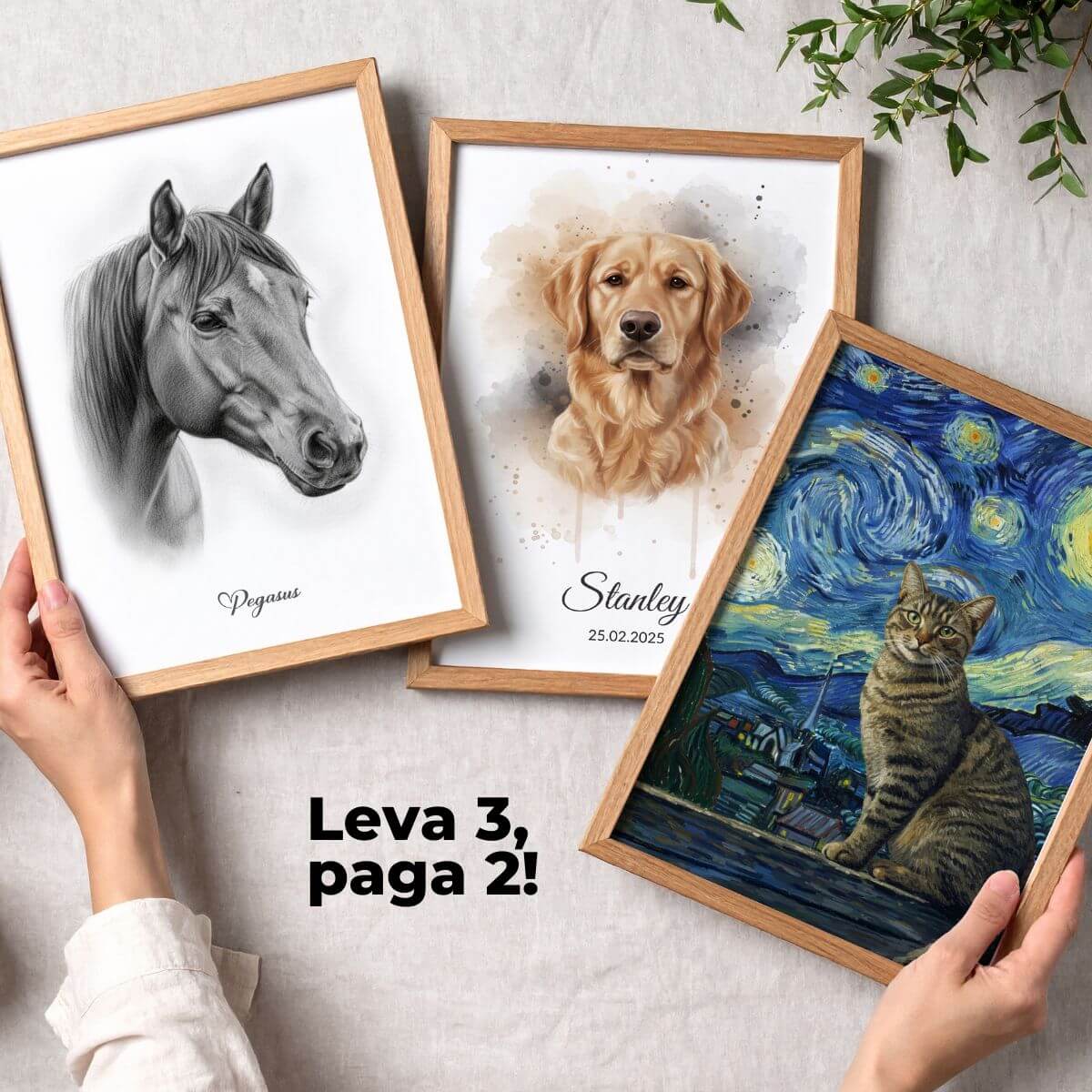 Tens vários animais de estimação? Adiciona 3 ou mais retratos à tua escolha ao carrinho e recebes automaticamente 1 retrato de oferta. Não é necessário código de desconto.